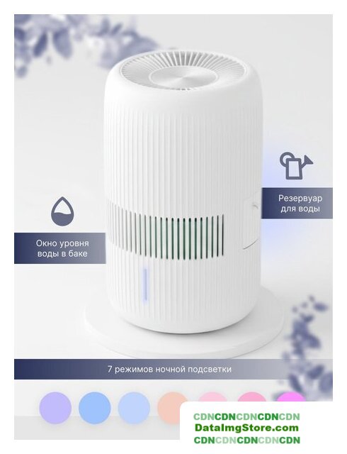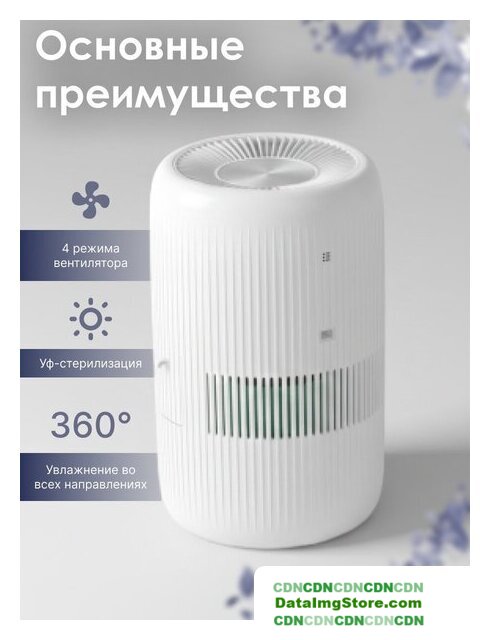 мойка воздуха, расход воды до 350 мл/ч, для помещения до 50 м², шум 27 дБ, питание: сеть, цвет белый