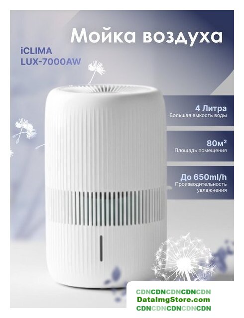 мойка воздуха, расход воды до 150 мл/ч, для помещения до 15 м², шум 55 дБ, питание: сеть, цвет белый