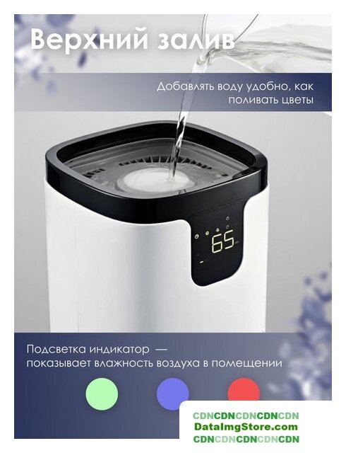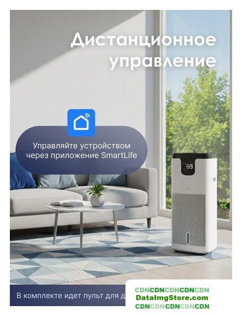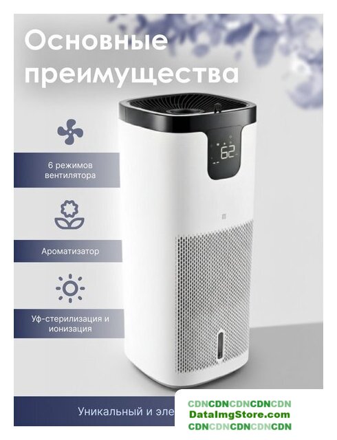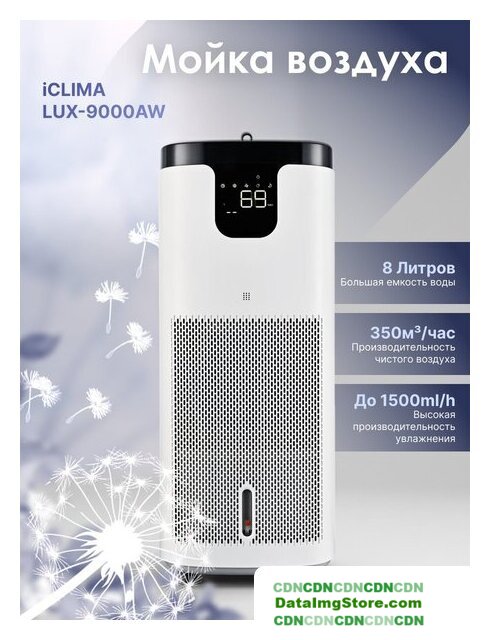 мойка воздуха, расход воды до 1200 мл/ч, для помещения до 100 м², Tuya, шум 17 дБ, питание: сеть, цвет белый