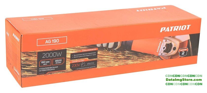 Комплект поставки | - Углошлифовальная машина- Защитный кожух диска- Боковая рукоятка- Комплект угольных щёток- Шестигранник- Ключ для затягивания стопорной гайки |