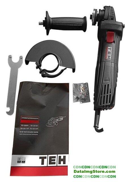 | Комплект поставки | - Угловая шлифмашина;, - Боковая рукоятка;, - Ключ для смены оснастки;, - Защитный кожух;, - Комплект угольных щеток;, - Руководство по эксплуатации;, - Упаковка (картонная коробка). |