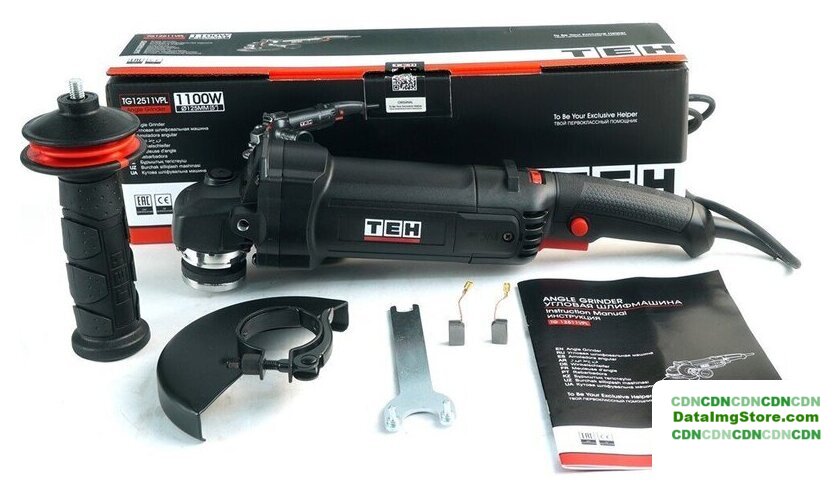 | Комплект поставки | - Угловая шлифмашина;, - Боковая рукоятка;, - Ключ для смены оснастки;, - Защитный кожух;, - Комплект угольных щеток;, - Руководство по эксплуатации;, - Упаковка (картонная коробка). |