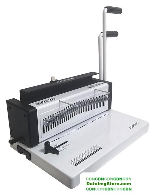 пружинный механический, пластиковая пружина, толщина переплета: 150 листов, одновременная перфорация 12 листов, шаг перфорации: 2:1, вертикальная обработка, металлический корпус