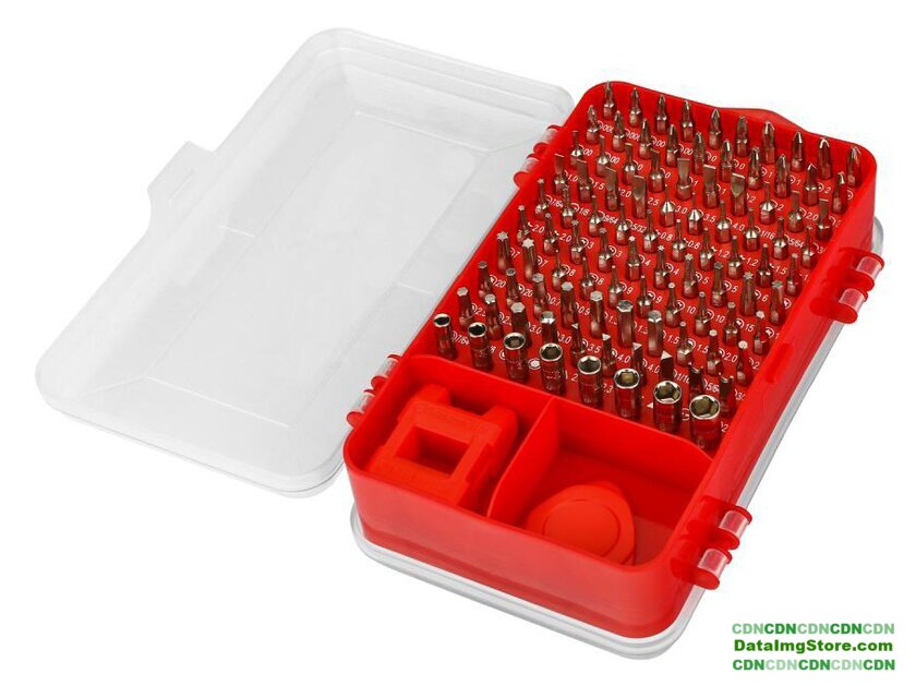 | Комплектация | Ручка-держатель алюминиевыйУдлинительПланка короткаяПинцетЛомик - 2шт.Захват для SIM cardМагнит/антимагнитПрисоскаМини-монтировкаБиты Phillips: PH000x2; PH00x2; PH0x2; PH1x2; PH2x2 - 10 шт.Биты Pozidrive: PZ00x2, PZ0x2, PZ1x2, PZ2x2 - 8 шт.Биты Tri-wring: TW2.0,TW3.0 - 2 шт.Биты пятигранные: 0.8x2; 1.2x2; 1.5x2; 2.0x2 - 8 шт.Биты Slotted: SL1.0,SL1.5,SL2.0,SL2.5,SL3.0,SL3.5,SL4.0,SL1/16,SL5/64,SL3/32,SL7/64,SL1/8,SL9/64,SL5/32 - 14 шт.Биты Torx: T3х2,T4х2,T5х2,T6х2,T7х2,T8х2,T9х2,T10х2,T15х2,T20х2 - 20 штБиты шестигранные: H0.7,H0.9,H1.3x2,H1.5x2,H2.0x2,H2.5x2,H3.0x2,H3.5,H4.0X2,H1/16,H5/64,H3/32,H7/64,H1/8,H9/64,H5/32 - 22 шт.Биты трехгранные: 2.0,2.3,2.7,3.0 - 4 шт.Биты Spanner: SP2.6x2 - 2 шт.Головки: M2.5,M3.0,M3.5,M4.0X2,M4.5,M5.0,M5.5 - 8 шт.Кейс |