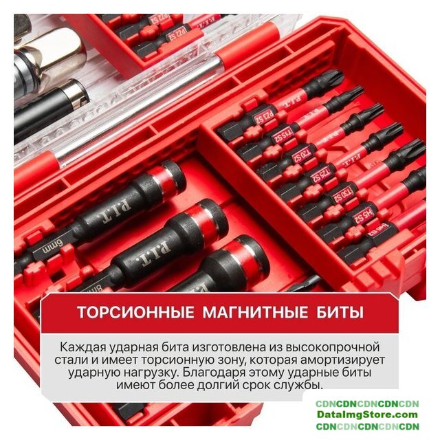 51 шт, рабочий размер биты: H3, H4, H5, H6, PH1, PH2, PH3, PZ1, PZ2, PZ3, SL4, SL5, SL5.5, SL6, T10, T15, T20, T25, T27, T30, T35, T40