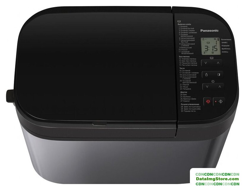 | Перечень режимов работы | Авто меню (Хлеб):1. Основной2. Основной быстрый3. Основной с изюмом4. Основной с добавками5. Основной малодрожжевой6. Цельнозерновой7. Цельнозерновой быстрый8. Цельнозерновой с изюмом9. Французский10. Ржаной11. Основной бездрожжевойАвто меню (Без глютена):12. Хлеб без глютена13. Кекс без глютена14. Пицца без глютена15. Паста без глютенаАвто меню (Тесто):16. Основной17. Основной с изюмом18. Цельнозерновой19. Цельнозерновой с изюмом20. Основной малодрожжевой21. Ржаной22. Пицца23. ПельмениАвто меню (Другое):24. Кекс25. Выпечка26. Варенье/Джем27. Фрукты в сиропеАвто меню (Ручное управление):28. Замес теста для кекса29. Замес теста для хлеба30. Подъем теста |