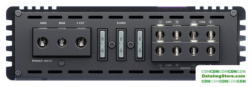 100 Вт×4 (4 Ом), 10–31500 Гц, сигнал/шум: 90 дБ, коэффициент гармонических искажений: 0.15%