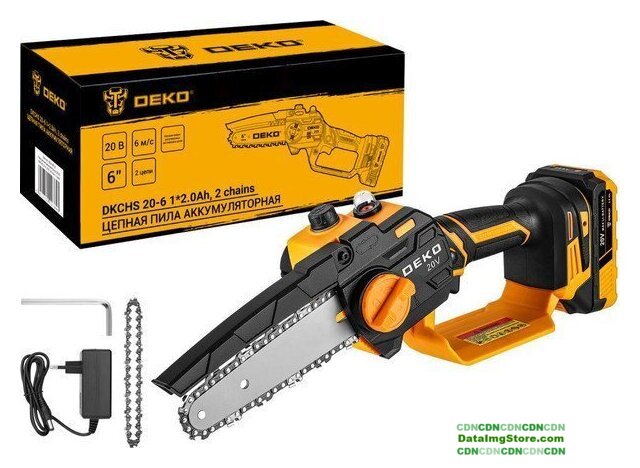 аккумуляторная, бытовая, 21 В, шаг цепи: 1/4 дюйма, длина шины: 15.2 см, аккумулятор в комплекте, быстрое натяжение цепи, 1.3 кг
