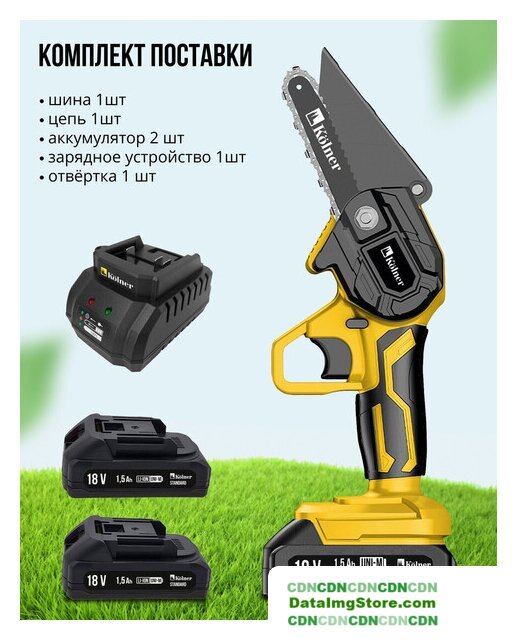 | Комплект поставки | - шина; - цепь;- 2 АКБ;- зарядное устройство; - отвертка. |