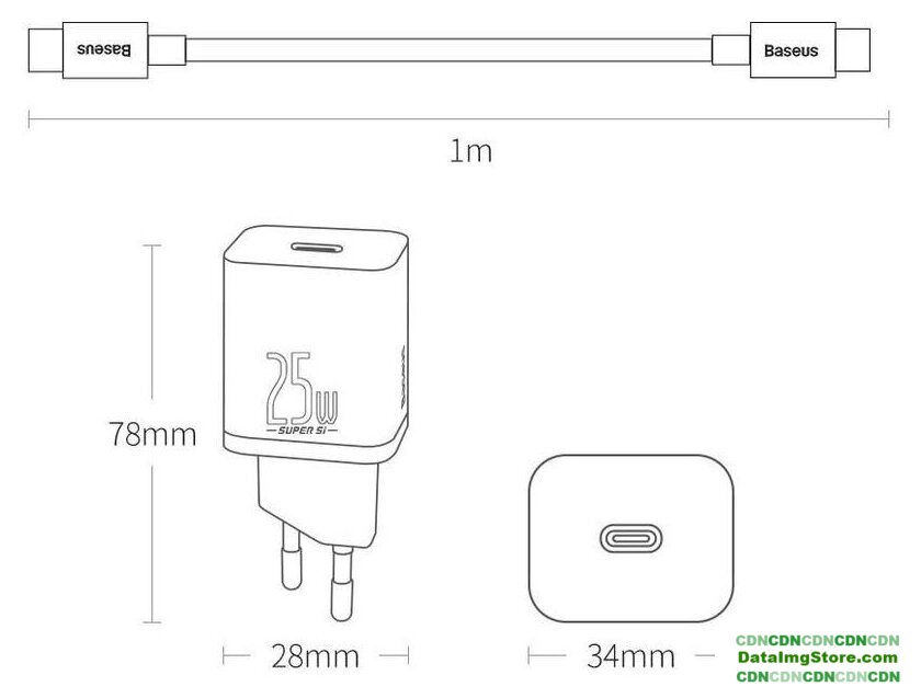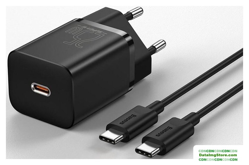 сетевое зарядное для телефонов/для планшетов, разъем подключения USB Type-C, выходная мощность 20 Вт, быстрая зарядка, Power Delivery, кабель 1 м