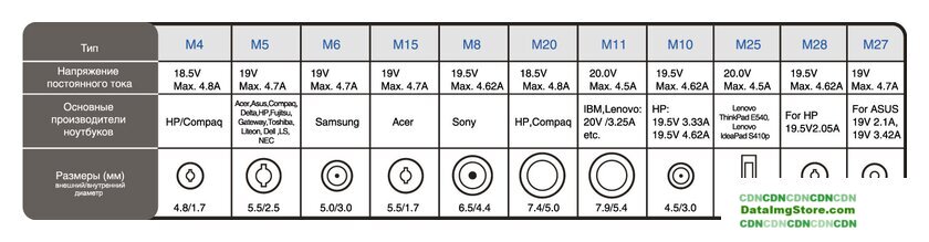 Совместимые ноутбуки | Acer, Asus, Compaq, Dell, Fujitsu, HP, Lenovo, LG, NEC, Samsung, Sony, Toshiba |