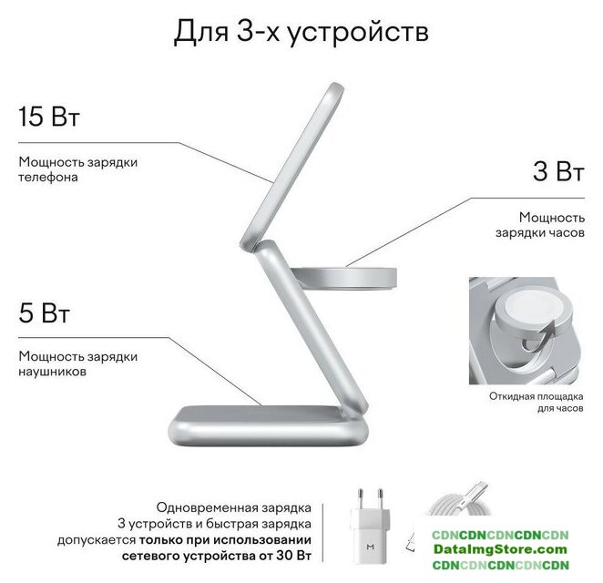 беспроводное зарядное/док-станция для телефонов/для наушников/для умных часов и/или браслетов, разъем подключения MagSafe, кабель 2 м