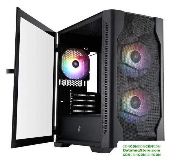 Mini Tower, БП отсутствует, для плат micro-ATX/mini-ITX, с 4 вентиляторами в комплекте, окно: закаленное стекло, видеокарта до 300 мм, охлаждение ЦП до 165 мм, пылевые фильтры, 2xUSB 2.0, 1xUSB-A 3.2 5Гбит/с, цвет черный