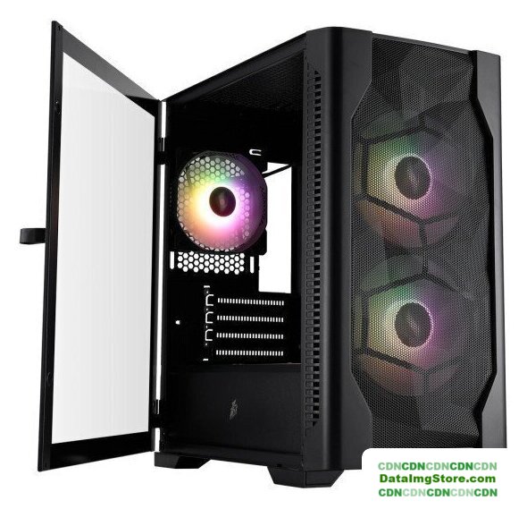 Mini Tower, БП отсутствует, для плат micro-ATX/mini-ITX, с 4 вентиляторами в комплекте, окно: закаленное стекло, видеокарта до 305 мм, охлаждение ЦП до 175 мм, пылевые фильтры, 2xUSB 2.0, 1xUSB-A 3.2 5Гбит/с, цвет черный