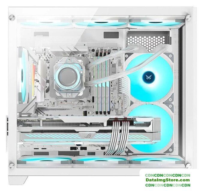 Mid Tower, БП отсутствует, для плат ATX/micro-ATX/mini-ITX, в комплекте 6 вентиляторов, окно: закаленное стекло, видеокарта до 305 мм, охлаждение ЦП до 160 мм, пылевые фильтры, 2xUSB 2.0, 1xUSB-A 3.2 5Гбит/с, цвет белый