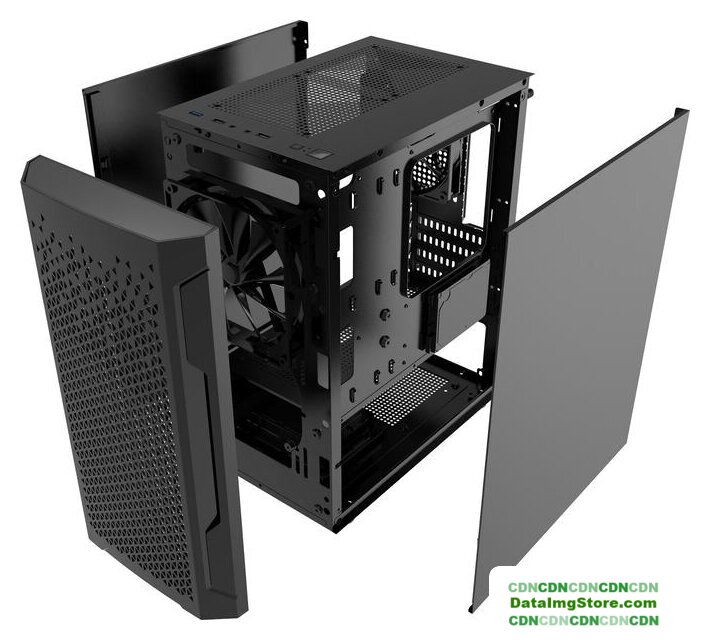 Mini Tower, БП отсутствует, для плат micro-ATX/mini-ITX, без вентиляторов в комплекте, окно: закаленное стекло, видеокарта до 330 мм, охлаждение ЦП до 170 мм, пылевые фильтры, 2xUSB 2.0, 1xUSB-A 3.2 5Гбит/с, цвет черный