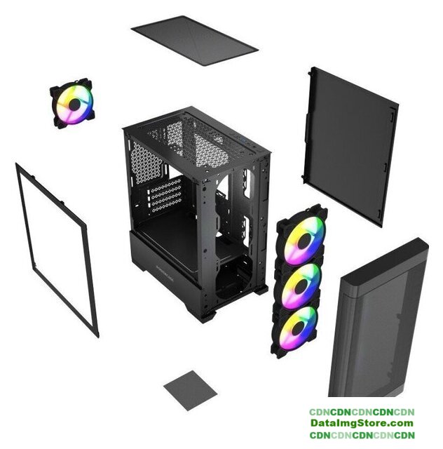 Mini Tower, БП отсутствует, для плат micro-ATX/mini-ITX, в комплекте 3 вентилятора, окно: закаленное стекло, видеокарта до 310 мм, охлаждение ЦП до 165 мм, 1xUSB 2.0, 1xUSB-A 3.2 5Гбит/с, цвет черный