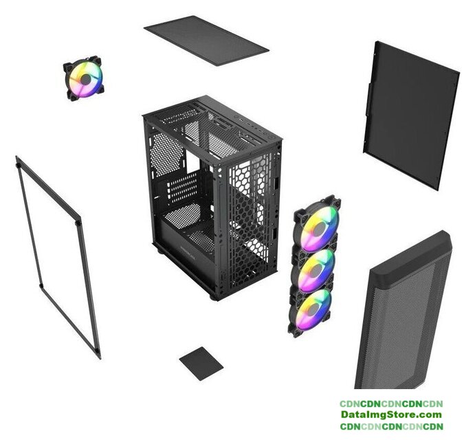 Mini Tower, БП отсутствует, для плат micro-ATX/mini-ITX, с 3 вентиляторами в комплекте, окно: закаленное стекло, видеокарта до 320 мм, охлаждение ЦП до 160 мм, пылевые фильтры, 2xUSB 2.0, 1xUSB-A 3.2 5Гбит/с, цвет черный