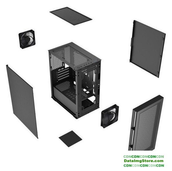 Mini Tower, БП отсутствует, для плат micro-ATX/mini-ITX, окно: закаленное стекло, видеокарта до 340 мм, охлаждение ЦП до 160 мм, пылевые фильтры, 2xUSB 2.0, 1xUSB-A 3.2 5Гбит/с, цвет черный