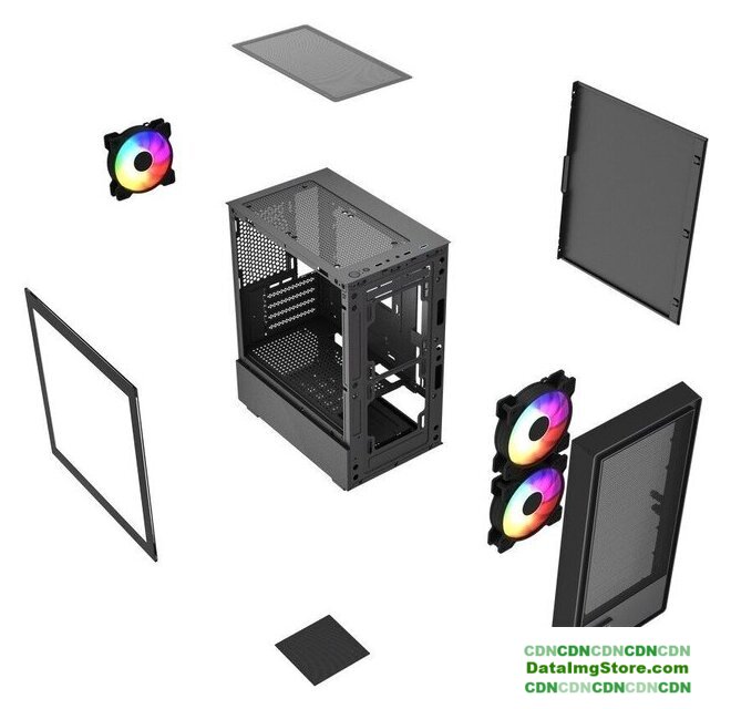 Mid Tower, БП отсутствует, для плат micro-ATX, в комплекте 4 вентилятора, окно: закаленное стекло, видеокарта до 310 мм, 2xUSB 2.0, 1xUSB-A 3.2 5Гбит/с, цвет черный