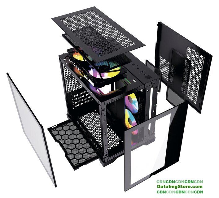аквариум/Mid Tower, БП отсутствует, для плат ATX/micro-ATX/eATX/mini-ITX, в комплекте 1 вентилятор, окно: закаленное стекло, видеокарта до 420 мм, охлаждение ЦП до 180 мм, 2xUSB-A 3.2 5Гбит/с, 1xUSB-C 3.2 10Гбит/с, цвет черный