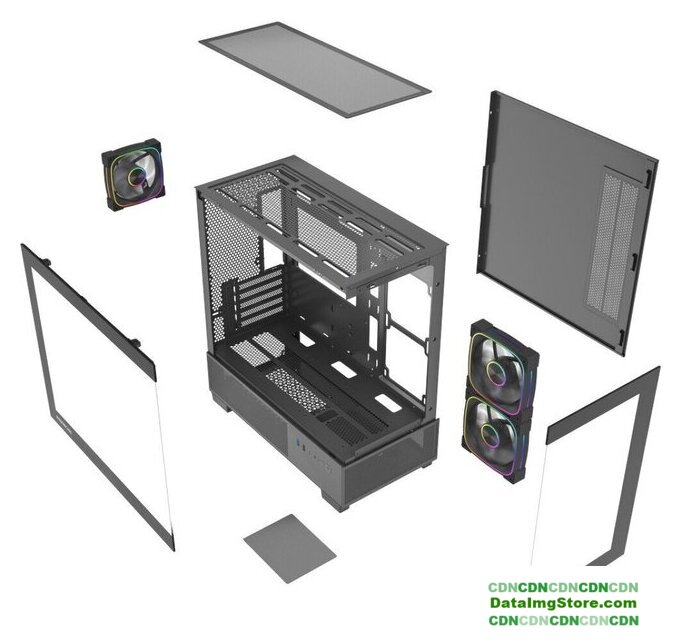 Mini Tower, БП отсутствует, для плат micro-ATX/mini-ITX, в комплекте 4 вентилятора, окно: закаленное стекло, видеокарта до 300 мм, охлаждение ЦП до 160 мм, пылевые фильтры, 2xUSB 2.0, 1xUSB-A 3.2 5Гбит/с, цвет черный