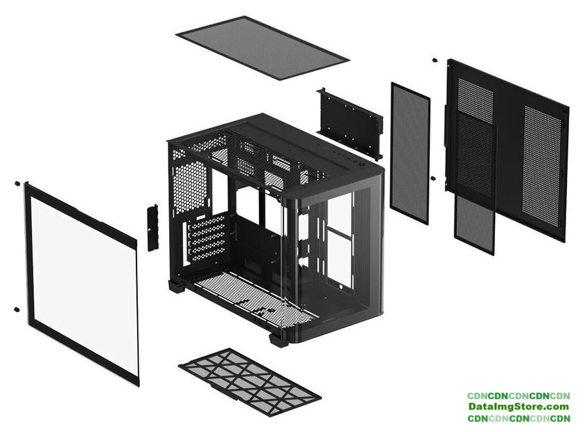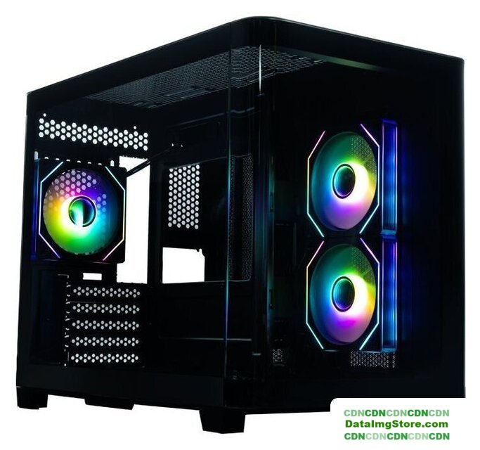 Mini Tower, БП отсутствует, для плат micro-ATX/mini-ITX, с 6 вентиляторами в комплекте, с контроллером вращения, окно: закаленное стекло, видеокарта до 400 мм, охлаждение ЦП до 165 мм, 2xUSB-A 3.2 5Гбит/с, 1xUSB-C 3.2 10Гбит/с, цвет черный