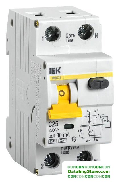 25 А, 2P, ном. отключающая способность 4.5 кА, тип дифф. тока AC, ток утечки 30 мА