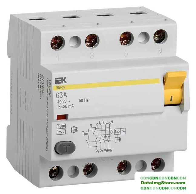 63 А, 4P, ном. отключающая способность 4.5 кА, тип дифф. тока AC, ток утечки 100 мА