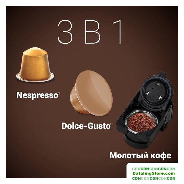капсульная кофеварка, 1350 Вт, корпус пластик, используемый кофе: молотый/капсулы Nespresso Original/Dolce Gusto/Cafissimo, цвет черный