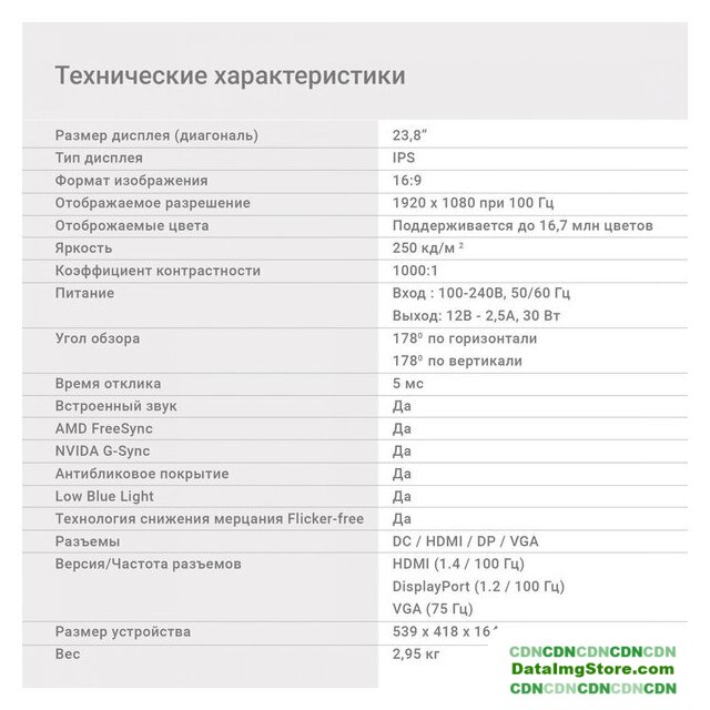 23.8", 16:9, 1920x1080, IPS, 100 Гц, AMD FreeSync/совместимый с NVIDIA G-Sync, динамики, интерфейсы HDMI+DisplayPort+D-Sub (VGA)