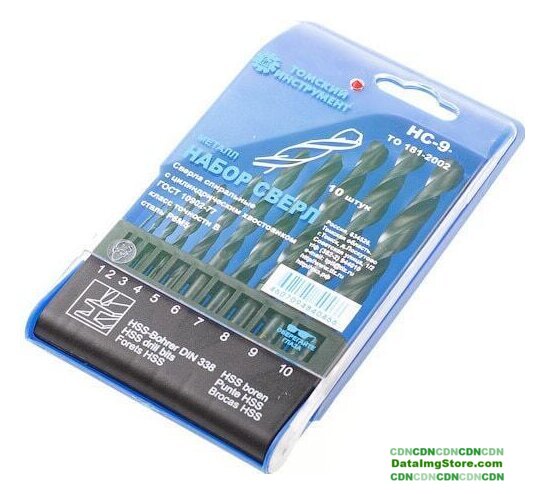 | Комплектация | Набор сверл по металлу, 10 штук d мм - 1; 2; 3; 4; 5; 6; 7; 8; 9; 10 |