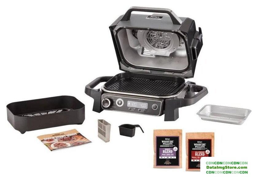 | Комплектация | 1 x Плоская емкость для гриля; 1 x Корзина для фритюра; 1x Съемный коптильный ящик; 1x Поддон для сбора жира; 1 x Лопатка; 1x Основной блок; Пеллеты Ninja Woodfire. |
