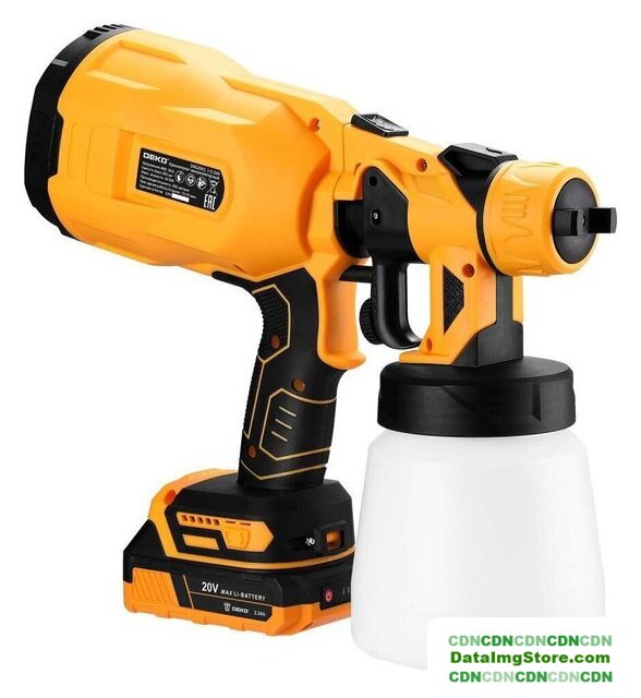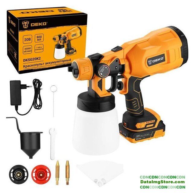 | Комплект поставки | -Краскопульт (корпус – 1 шт, насадка-распылитель – 1 шт, емкость для краски – 1 шт)-Стакан для измерения вязкости – 1 шт.-Игла для прочистки сопла – 1 шт.-Фильтр для краски – 5 шт.-Сопло (наконечник – 3 шт, колпачок – 3 шт) – 3 шт.-Ключ – 1 шт.-Аккумулятор 2.3 Ач – 1 шт.-Зарядное устройство – 1 шт.-Руководство по эксплуатации-Коробка |