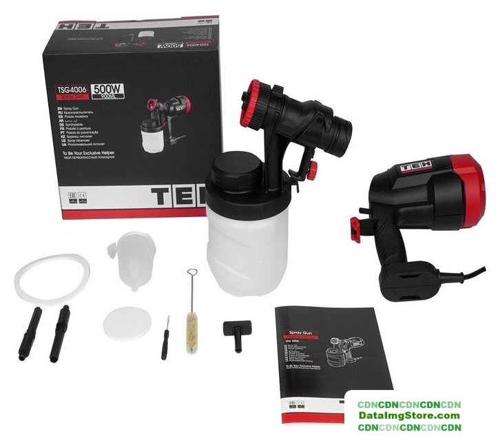| Комплект поставки | - Краскораспылитель;, - Стакан для измерения вязкости;, - Стержень для очистки;, - Щетка для очистки;, - Ключ для наконечника сопла;, - Руководство по эксплуатации;, - Упаковка (картонная коробка). |