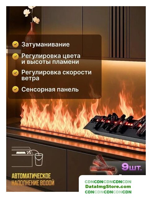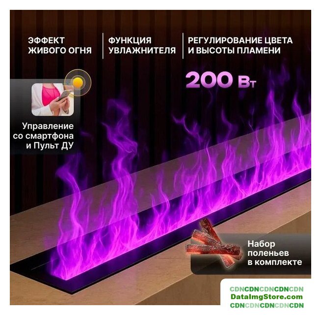 электрокамин, встраиваемый, современный стиль, 2000 Вт, имитация 2D (LED), термостат, пульт