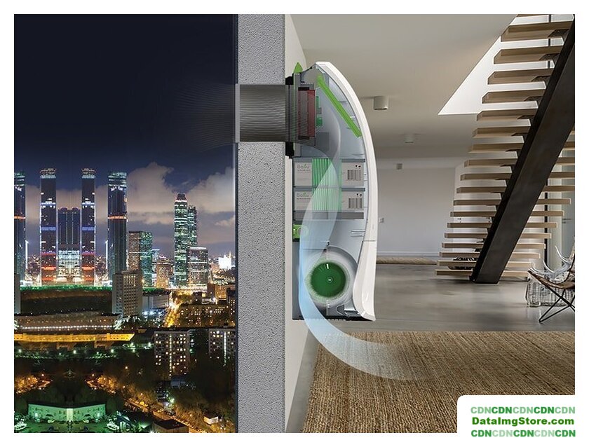 накладной проветриватель без нагрева, настенная установка, диаметр: 12 см, производительность: 200 куб.м/ч, 85 Вт, таймер (задержка отключения) + датчик загрязнения воздуха + пульт ДУ + управление с помощью смартфона, белый
