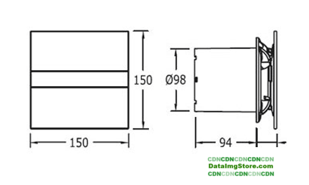 накладной осевой вентилятор, потолочная/настенная установка, диаметр: 9.8 см, производительность: 190 куб.м/ч, 15 Вт, отдельная кнопка или выключатель света + таймер (задержка отключения), белый