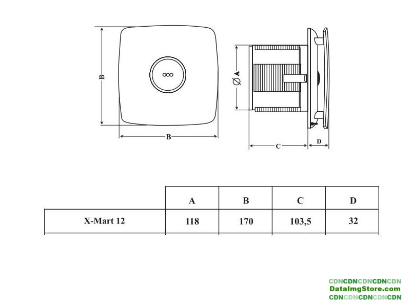 накладной осевой вентилятор, потолочная/настенная установка, диаметр: 10 см, производительность: 100 куб.м/ч, 15 Вт, отдельная кнопка или выключатель света + таймер (задержка отключения), зеленый