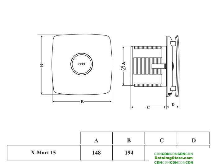 накладной осевой вентилятор, потолочная/настенная установка, диаметр: 11.8 см, производительность: 190 куб.м/ч, 20 Вт, отдельная кнопка + выключатель света + таймер (задержка отключения) + датчик влажности, нержавеющая сталь