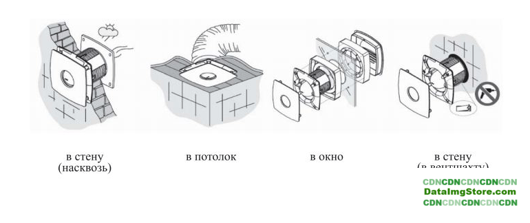 | Включение/выключение | отдельная кнопка, выключатель света, таймер (задержка отключения), датчик влажности |