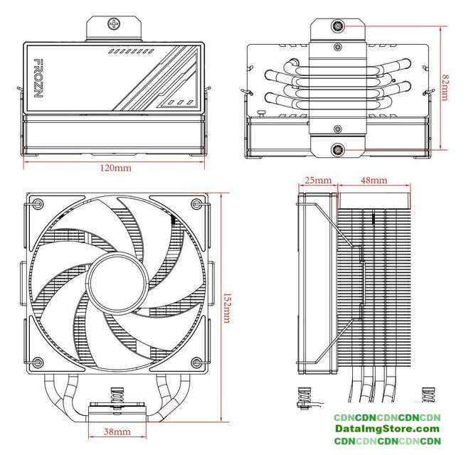рассеивание до 220 Вт, высота 156.7 мм, макс. шум 29 дБ, вентилятор 120 мм, 2000 об/мин, PWM, подшипник гидродинамический (FDB), ARGB подсветка