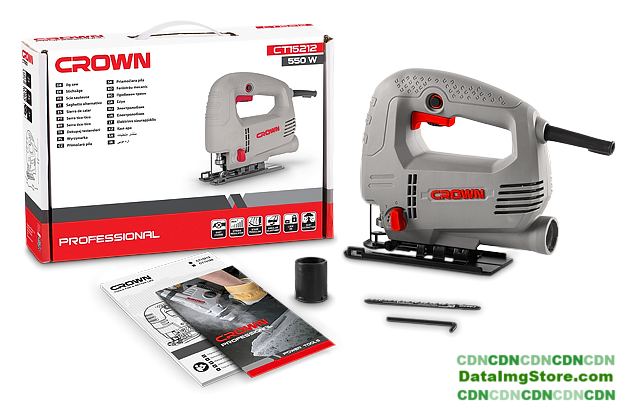 рукоятка-скоба, питание: сеть, 550 Вт, глубина пропила: 65 мм (дерево), 3 мм (сталь), 300–3000 ходов/мин, ход пилки: 18 мм, 2 кг