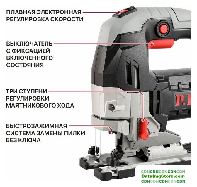 500 Вт, рукоятка-скоба, глубина пропила: 75 мм (дерево), 6 мм (сталь), 0–3000 ходов/мин, ход пилки: 19 мм, 1.8 кг