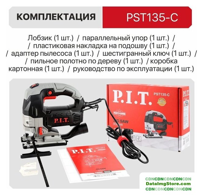 | Комплект поставки | - Лобзик,, - пильное полотно по дереву,, - параллельный упор,, - пластиковая накладка на подошву,, - шестигранный ключ,, - адаптер для подлючения пылесоса,, - руководство по эксплуатации,, - коробка. |