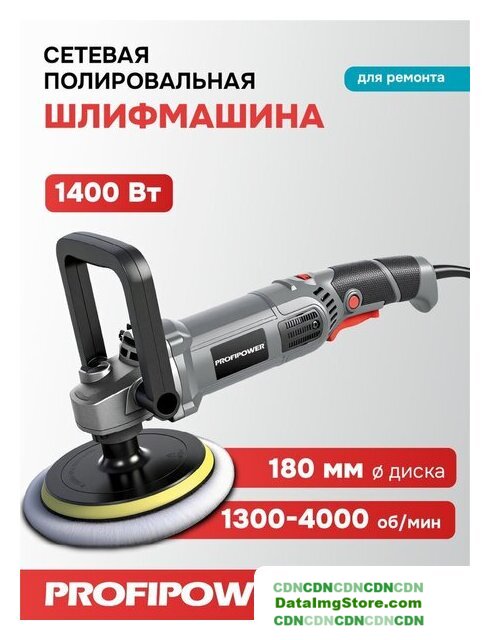 полировальная шлифмашина, диаметр шлифкруга: 125 мм, 1400 Вт, 9500 об/мин холостого хода, 2.4 кг