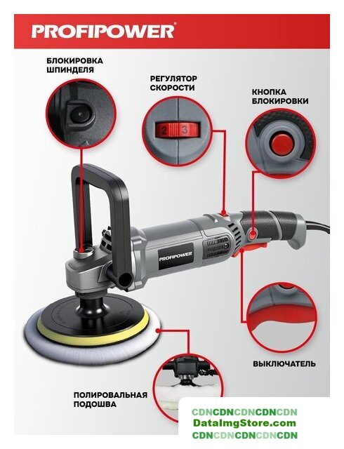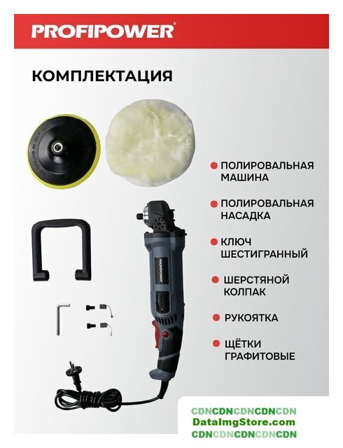 | Комплект поставки | - Полировальная насадка;- Ключ шестигранный;- Шерстяной колпак;- Рукоятка;- Графитные щетки. |