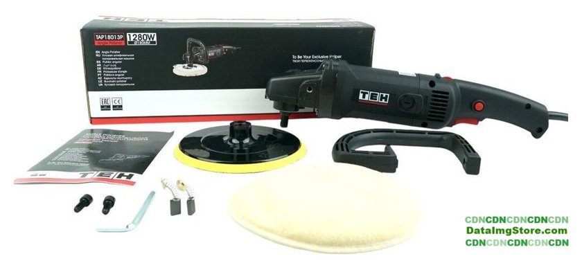 | Комплект поставки | - Угловая полировальная шлифмашина;, - Дополнительная рукоятка;, - Опорная платформа;, - Полировальный колпак;, - Ключ;, - Комплект угольных щеток;, - Руководство по эксплуатации;, - Упаковка (картонная коробка). |