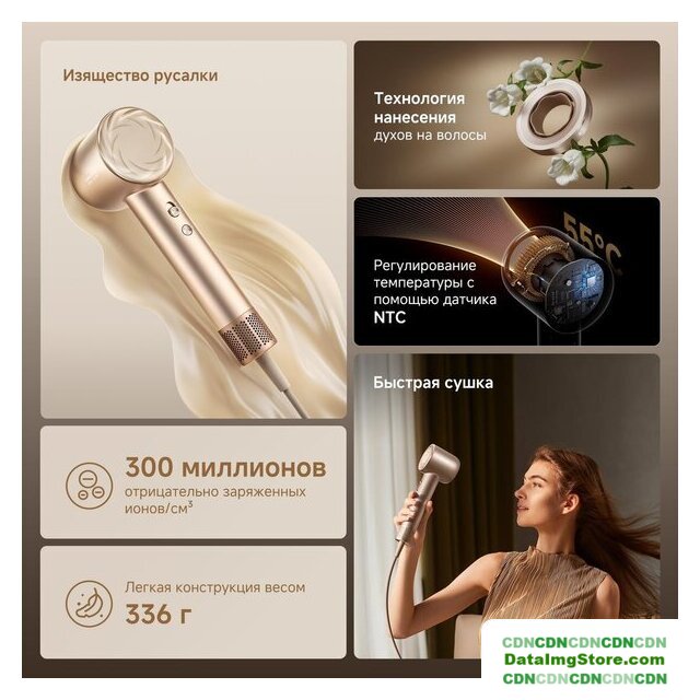 2000 Вт, EC (BLDC) мотор, ионизация, независимая регулировка температуры, шнур 2.77 м, серый