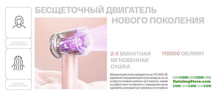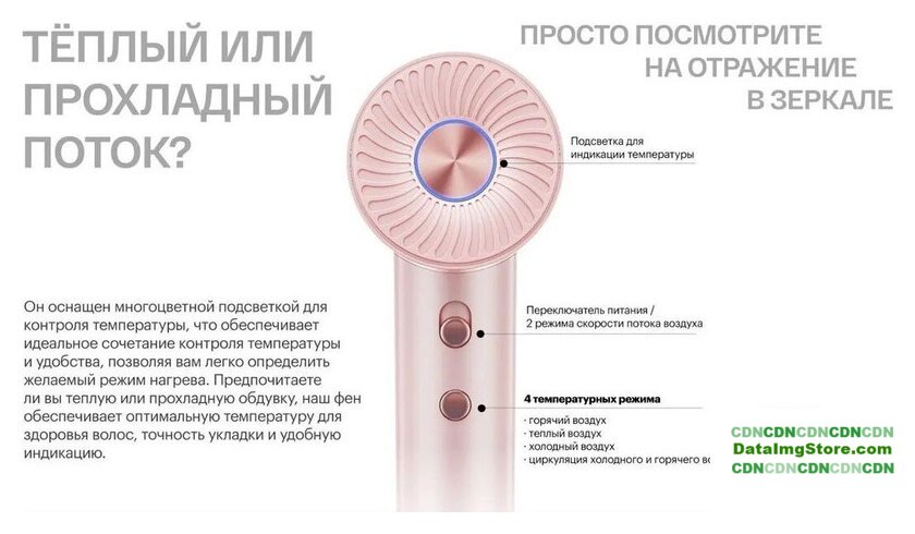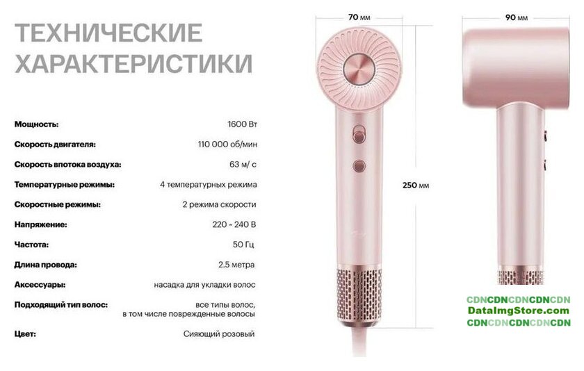 2000 Вт, DC мотор, ионизация, независимая регулировка температуры, шнур 1.8 м, синий/черный